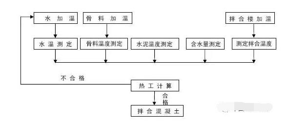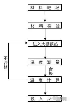 5.3根據(jù)計算結(jié)果進(jìn)行判定,若計算結(jié)果表明拌和后的混凝土溫度復(fù)核驗(yàn)標(biāo)要求,那么可立刻進(jìn)行混凝土拌和,若計算結(jié)果表明拌和后的溫度不能達(dá)到驗(yàn)標(biāo)要求,通過水加溫等手段提高各原材料溫度,重新進(jìn)入下一道工序。