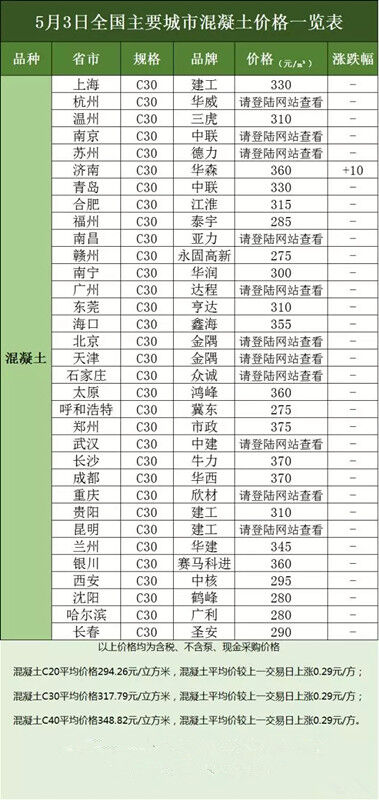 砼商網(wǎng)資源分享,4月24日全國(guó)主要城市水泥、混凝土價(jià)格表。