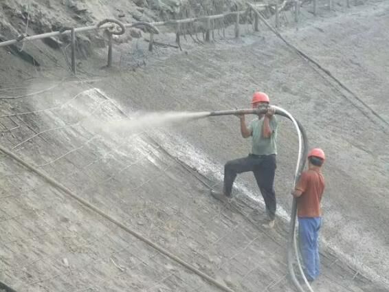 潮噴:是將骨料預加少量水,使之呈潮濕狀,再加水泥拌和,從而降低上料、拌和和噴射時的粉塵。但大量的水仍是在噴頭處加入和噴出的,其噴射工藝流程和使用機械同干噴工藝。目前施工現(xiàn)場較多使用的是潮噴工藝。