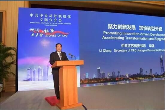 8月31日,中共中央對外聯(lián)絡(luò)部在京舉行“中國共產(chǎn)黨的故事:江蘇省委的實(shí)踐——創(chuàng)新驅(qū)動、轉(zhuǎn)型發(fā)展”專題宣介會,邀請中共江蘇省委向訪華的外國政黨政要、駐華使館高級外交官、外國商會、跨國公司駐華代表等,宣介習(xí)近平總書記治國理政新理念新思想新戰(zhàn)略在江蘇的貫徹落實(shí)情況,展示江蘇省委落實(shí)習(xí)近平總書記重要指示精神,在創(chuàng)新驅(qū)動轉(zhuǎn)型發(fā)展生動實(shí)踐中的突出成效和經(jīng)驗(yàn)做法。