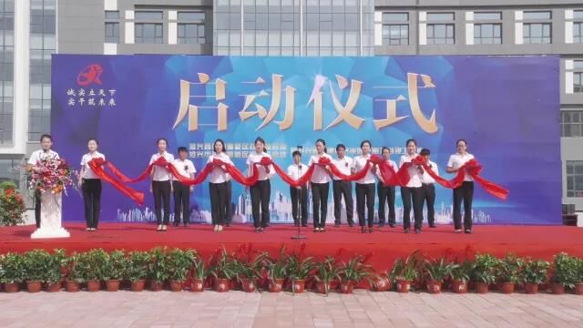 臺上領(lǐng)導(dǎo)共同為慶典儀式剪彩,將現(xiàn)場氣氛推向高潮。