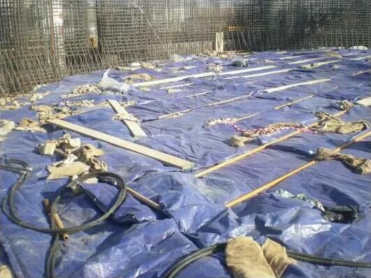 頂板、梁混凝土上部保溫為在新澆筑的混凝土表面先覆蓋塑料布再覆蓋一層草墊。對(duì)于邊角等薄弱部位或迎風(fēng)面應(yīng)加蓋草墊并做好搭接。如室外日平均氣溫在0℃及0℃以下采取在澆制的混凝土表面蓋一層塑料膜,以防稻草等覆蓋物受潮,再在混凝土周圍蓋上稻草,最后在坑口上蓋一層塑料以增強(qiáng)保溫性,來(lái)保證混凝土的質(zhì)量?;炷恋娜肽囟瓤刂圃?℃以上;混凝土澆筑后的起始養(yǎng)護(hù)溫度不低于5℃,若達(dá)不到以上溫度,則要提高養(yǎng)護(hù)水溫以滿足要求。
