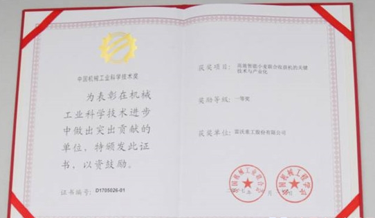 雷沃重工連獲兩項(xiàng)行業(yè)科技一等獎(jiǎng)