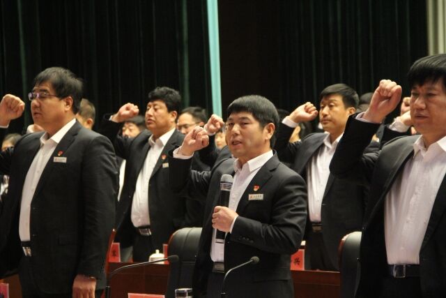 全體員工在董事長(zhǎng)楊煥成的帶領(lǐng)下敬頌滄興誓詞
