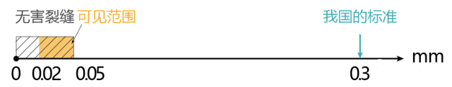 在正常使用荷載作用下,鋼筋混凝上結(jié)構(gòu)一般是帶裂縫工作的,一般肉眼可見的裂縫范圍為0.02~0.05mm,裂縫寬度小于0.05mm 的屬無害裂縫,對防水、防腐蝕與承重的影響均可忽略不計。