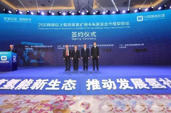 濰柴與國(guó)能集團(tuán)合作開展的200噸級(jí)氫能礦卡項(xiàng)目簽約儀式