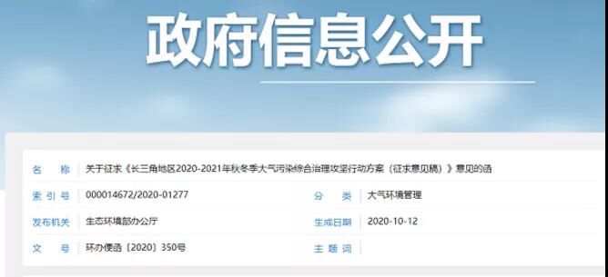 長三角地區(qū)2020-2021年秋冬季大氣污染綜合治理攻堅(jiān)行動(dòng)方案