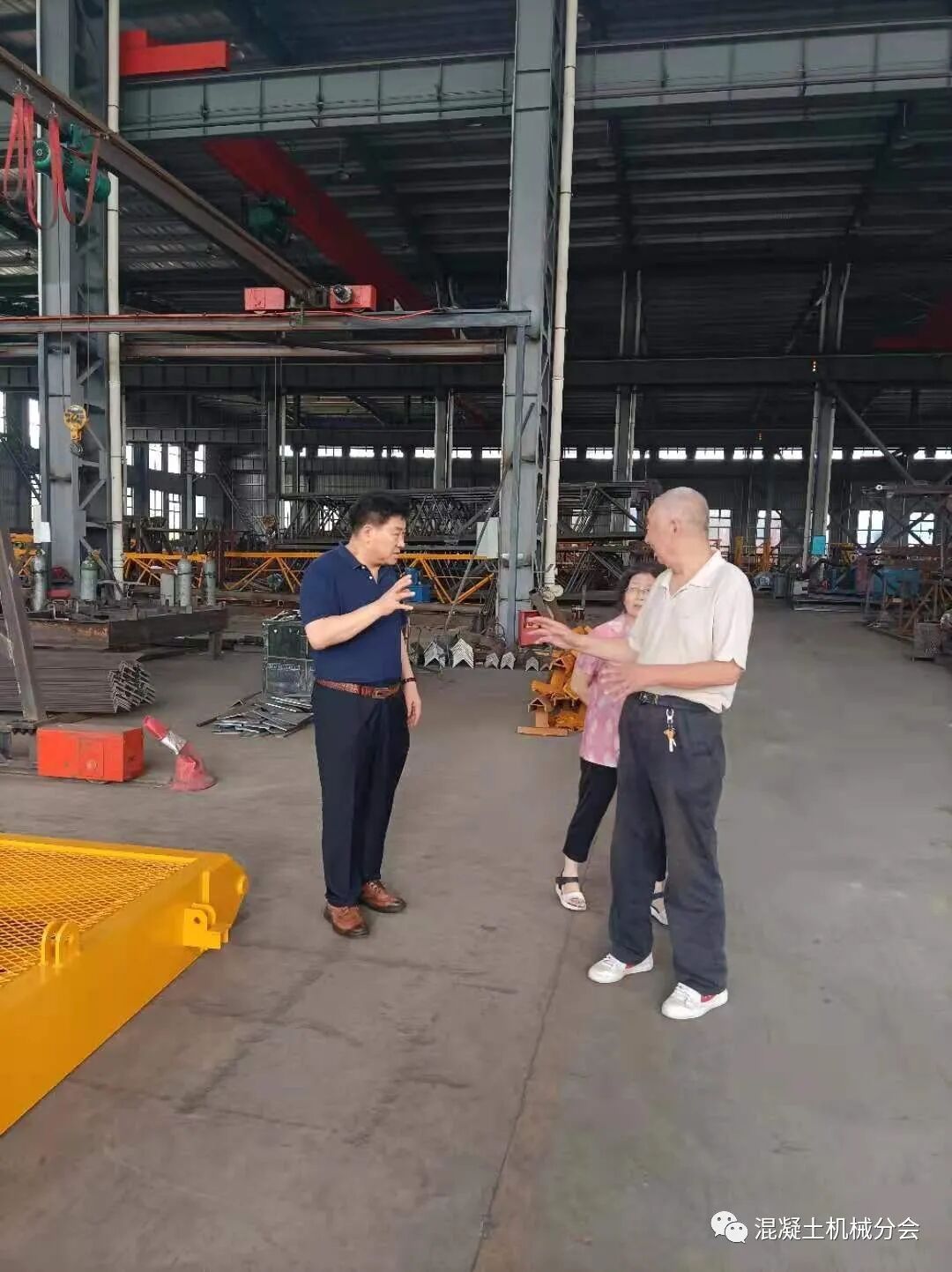 張工講到,周總外出學習趕不回來,特別交代自己和林總接待好符會長一行。在交流的過程中,張工也提到因為行業(yè)現(xiàn)在經(jīng)營比較困難,公司基本停止了混凝土攪拌設備的生產(chǎn),只有部分塔式起重機還在經(jīng)營,也陪同會長在車間參觀了一圈,對實際的生產(chǎn)情況進行了解。