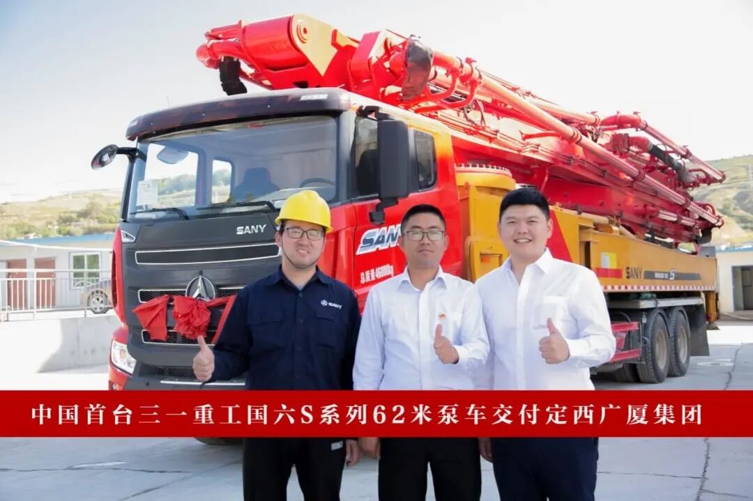2021年8月,定西廣廈集團(tuán)采購(gòu)國(guó)內(nèi)首臺(tái)三一國(guó)六S系列62米泵車(chē)。