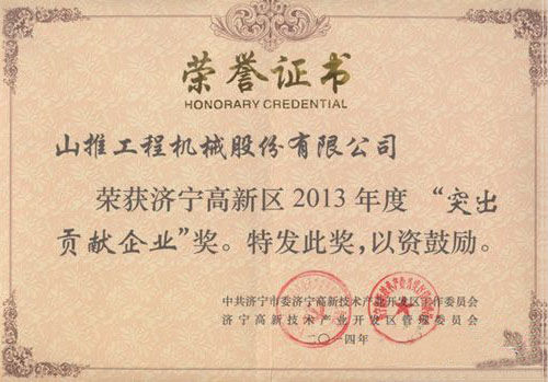 山推全年在區(qū)內(nèi)的科技創(chuàng)新與技術(shù)發(fā)展方面起到了輻射帶動作用,財政貢獻顯著,為全區(qū)經(jīng)濟社會又好又快發(fā)展做出了突出貢獻。根據(jù)《濟寧高新區(qū)管委會關(guān)于鼓勵企業(yè)創(chuàng)新發(fā)展的若干規(guī)定》(濟高新管發(fā)【2012】32號)文件精神,公司被授予“突出貢獻企業(yè)”與“專利特別獎”,同時獲得一項科技進步獎與行業(yè)標(biāo)準(zhǔn)獎勵,研究總院副院長周士建博士榮獲“551人才”稱號。