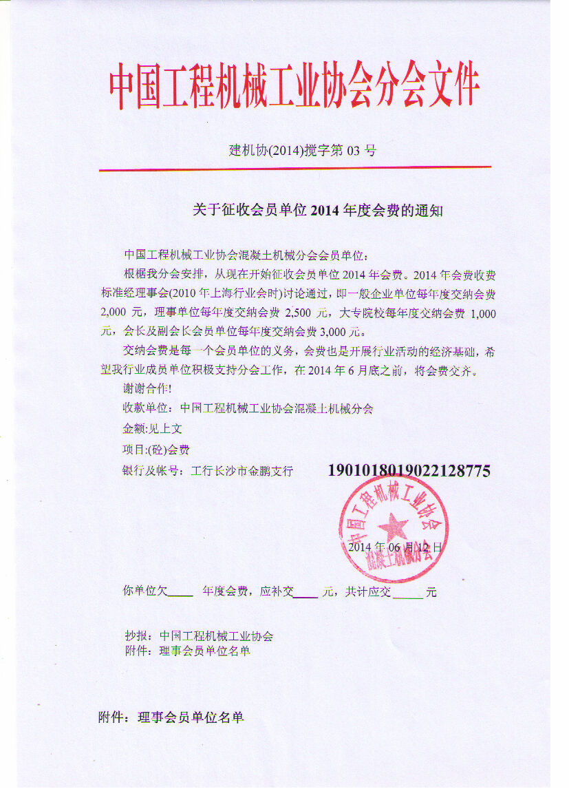 關(guān)于征收會(huì)員單位2014年度會(huì)費(fèi)的通知