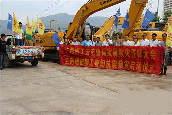 柳工機械云南魯?shù)榭拐鹁葹?zāi)誓師大會啟動