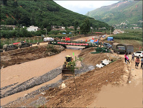 柳工機械在云南魯?shù)橹貫?zāi)區(qū)開挖生命通道