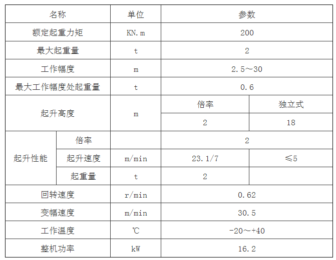 QT20K塔機主要性能參數(shù)