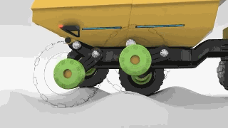 Centaur鉸接式卡車具備強大的裝載能力,其載重能力或?qū)⒊^40噸,巨大的輪胎和堅固的底盤支撐起了這只龐然大物。Centaur鉸卡采用了非常獨特的懸掛設計,6個輪胎分別獨立地與主軸連接,連接處可以自由轉(zhuǎn)動,這使得Centaur在坎坷不平的路面上如履平地。