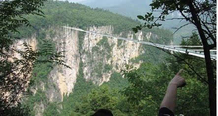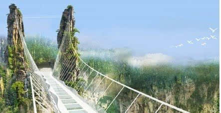 號(hào)稱世界最長(zhǎng)、最高的全透明玻璃橋———據(jù)遺產(chǎn)日?qǐng)?bào): 張家界大峽谷玻璃橋?qū)⒂?月向游客開放。玻璃橋總長(zhǎng)430米、寬6米,橋面距谷底約300米,可站800人。整個(gè)工程無鋼筋混凝土橋墩,同時(shí)肩負(fù)蹦極、溜索、舞臺(tái)等多種功能。
