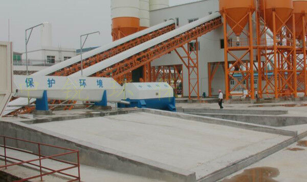 該系統(tǒng)主要由:攪拌車(chē)加水清洗裝置,溜槽輸送裝置,砂石漿水分離裝置,和泥漿水后處理裝置組成?;炷凛斔驮O(shè)備清洗后,將殘余混凝土排入溜槽中,在高壓水流沖擊下,經(jīng)溜槽進(jìn)入砂石分離機(jī),在不斷旋轉(zhuǎn)的分離機(jī)作用下,對(duì)混凝土進(jìn)行充分的清洗,同時(shí)將砂、石進(jìn)行分離,分離后的砂、石在導(dǎo)料葉片的作用下背向流動(dòng),再通過(guò)提升式出料口排出分離機(jī),分別堆放。清洗后的漿水從分離機(jī)的底部排出進(jìn)入沉淀池逐級(jí)沉淀后循環(huán)使用或進(jìn)入攪拌池回收利用。進(jìn)入攪拌池(一般情況2個(gè)攪拌池)的漿水為了防止沉淀凝固,需通過(guò)攪拌器的作用,攪拌器的工作為間歇式。分離出水泥漿在連續(xù)的攪拌器作用下,再通過(guò)高壓污水泵輸送到攪拌樓中待生產(chǎn)計(jì)量再利用。整個(gè)控制系統(tǒng)設(shè)有手動(dòng)和自動(dòng)控制,方便控制設(shè)置,整個(gè)系統(tǒng)運(yùn)行可靠,故障率低,維護(hù)量少等特點(diǎn)。