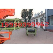 組合形式為:底盤有駕駛室和方向盤,有自動(dòng)行走功能;扒谷機(jī)安裝在底盤前部,可升降;組合輸送機(jī)安裝在底盤后部,可相對底盤左右旋轉(zhuǎn),輸送機(jī)部分又分為上下兩層輸送機(jī),上層輸送機(jī)的終端用轉(zhuǎn)盤和跑輪與下層輸送機(jī)連接,兩者可相對旋轉(zhuǎn)和移動(dòng),扒谷機(jī)部分又可以和上層輸送機(jī)90度范圍內(nèi)轉(zhuǎn)向。