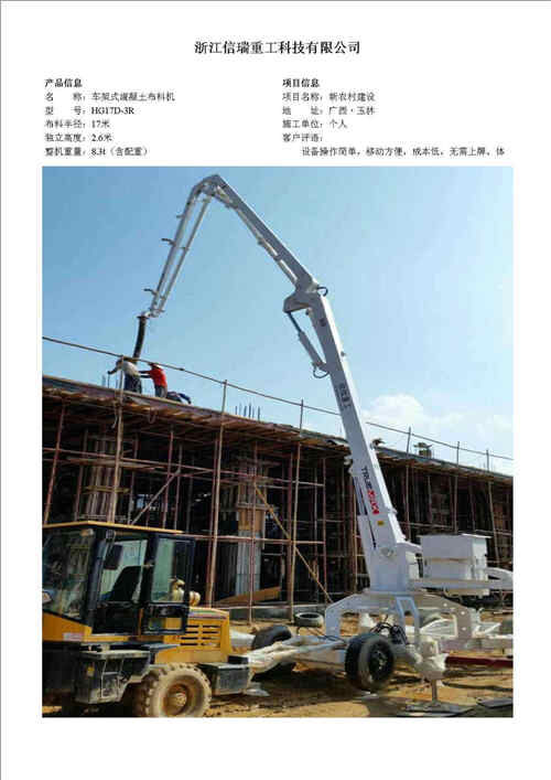 歸屬行業(yè):信瑞重HG24A-3R電梯井內(nèi)爬混凝土布料機