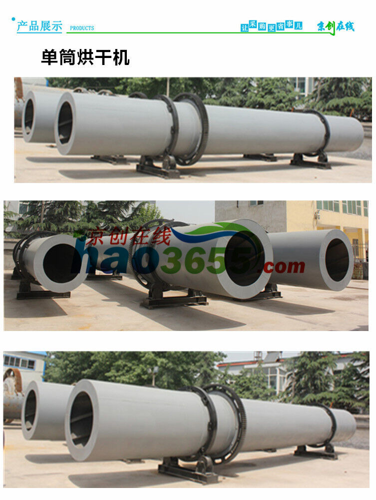 單筒烘干機(jī)φ3×25筒體是一個(gè)與水平線略成傾斜的旋轉(zhuǎn)圓筒,物料從較高一端加入,載熱體由低端進(jìn)去,與物料成逆流接觸,也有載熱體和物料一起并流入筒體的,隨著筒體的轉(zhuǎn)動,物料受重力作用運(yùn)行到較低的一端。
