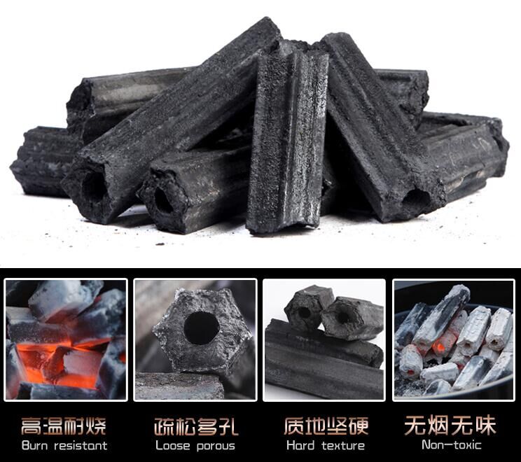 易燃速燃碳,無毒易燃碳呈壓制成中空的六棱形,從碳灰上就看出來含有煤的成份。一般常用汽油,助燃劑等其他方式點(diǎn)燃。