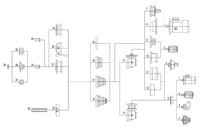 —輸入型式:高速輸入軸,電動(dòng),液壓馬達(dá)的接盤;多碟制動(dòng)器等。