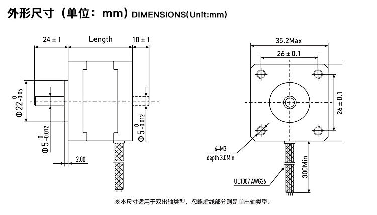 兩相1.8°混合式步進電機35系列步進電機