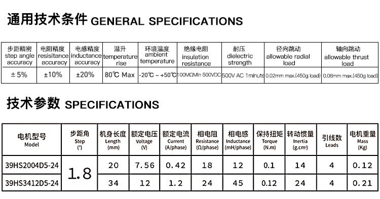 兩相1.8°混合式步進(jìn)電機(jī)39系列步進(jìn)電機(jī)