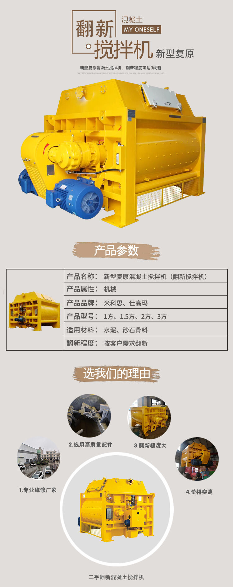 歸屬行業(yè):新型復(fù)原混凝土攪拌機(jī) 二手翻新混凝土攪拌機(jī)
