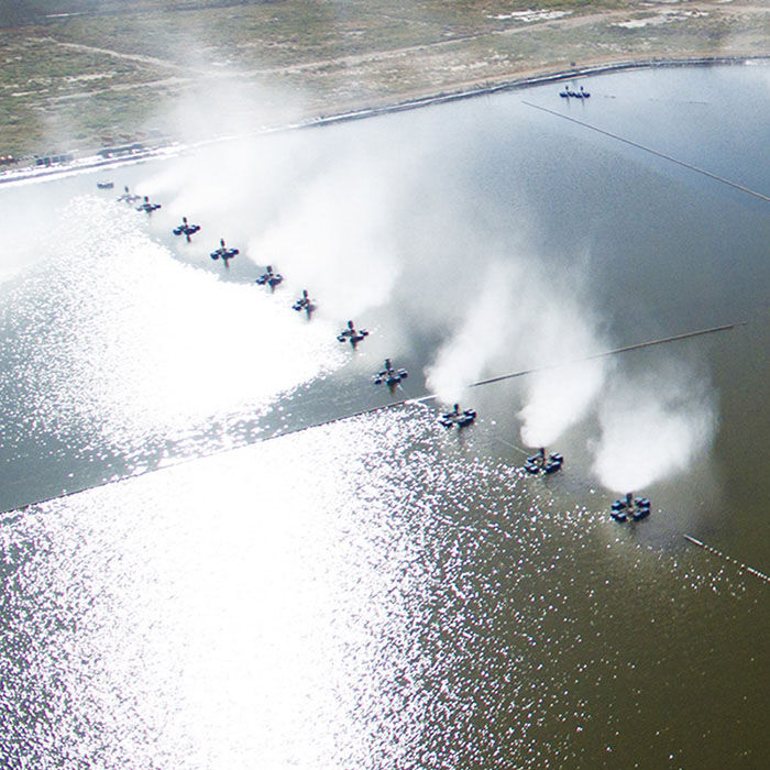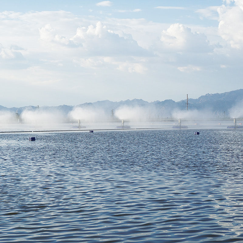 并且占地面積小、投資成本低。還有一種是風送式蒸發(fā)器、風送式蒸發(fā)器是把蒸發(fā)設(shè)備架在岸邊、利用高速旋轉(zhuǎn)的風機把水破碎噴灑在天空中進行蒸發(fā),這種和漂浮式蒸發(fā)器效果類似