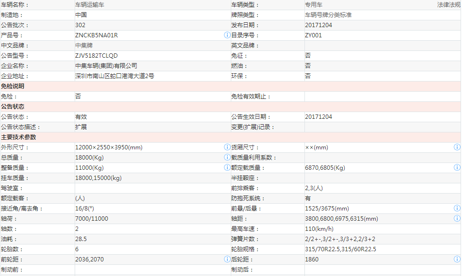 歸屬行業(yè):ZJV5182TCLQD中集車輛運輸車
