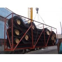 擋邊和隔板的底部和基帶是工廠按國際標準經(jīng)一次硫化加二次硫化結(jié)合而成。擋邊和隔板的高度可以達10-400mm,在裙帶中間,我廠增加了高強力抗拉伸織物層,加強了裙邊的抗撕裂強度,大大延長了裙邊的使用壽命