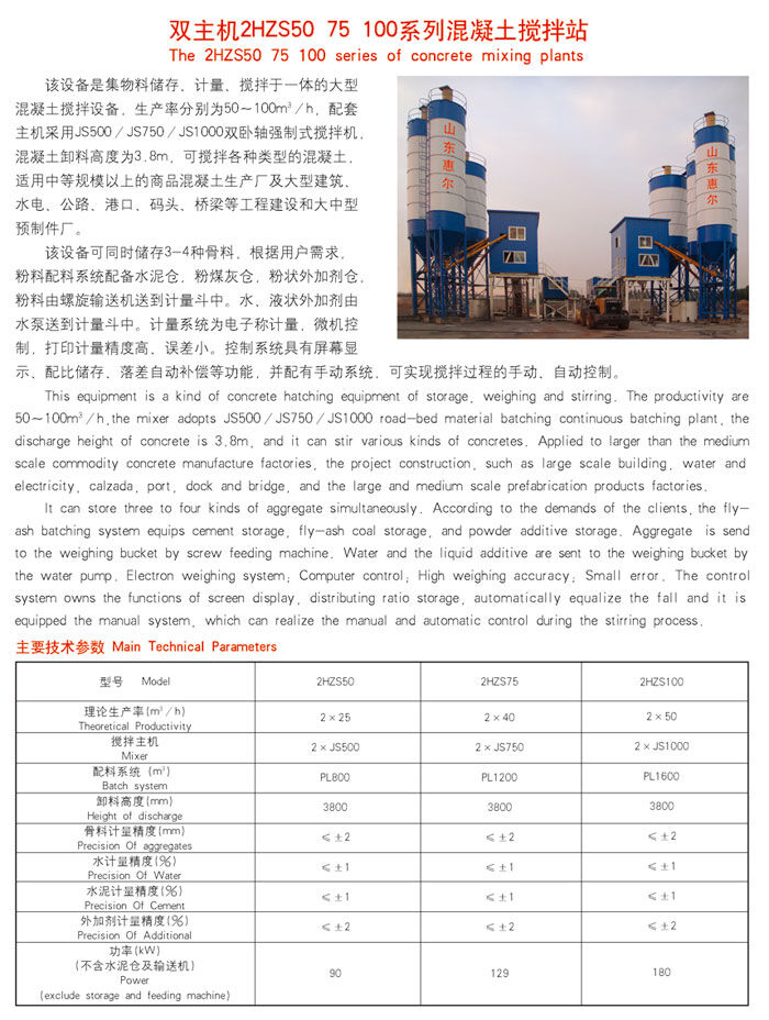 歸屬行業(yè):雙主機2HZS100混凝土攪拌站