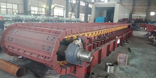 近年來(lái), 對(duì)板式給料機(jī)的需求量不斷擴(kuò)大, 除了作為給料機(jī)使用外, 逐漸也用來(lái)轉(zhuǎn)運(yùn)物料。從幾年來(lái)的供貨及需求情況看, 除訂貨量增大外, 也要求長(zhǎng)度增大,板式給料機(jī)長(zhǎng)度已達(dá)30米以上, GBL中型長(zhǎng)度也超過20米.因此, 整體式機(jī)架已不能滿足用戶要求, 可采用分段裝配式, 即分標(biāo)堆節(jié)非標(biāo)準(zhǔn)節(jié)頭節(jié)和尾節(jié), 這樣便于制造安裝和運(yùn)輸,另外尾節(jié)部分應(yīng)配置受料漏斗.