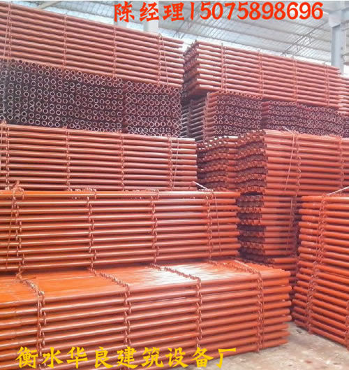 內(nèi)支模架、內(nèi)支模腳手架的對接立桿是在直徑為48鋼管上焊接了15公分直徑為60的鋼管實現(xiàn)對接,能夠?qū)崿F(xiàn)對不同高度的樓層進行調(diào)節(jié)。無論是地下室還是標(biāo)準(zhǔn)層同樣適用。每根對接立桿上面焊接了一個花盤,可以連接橫桿。對接立桿的規(guī)格: 對接立桿:2.25米; 1.95米; 1.2米; 1.05米; 0.75米 橫桿是在在不同長度鋼管上焊接了兩個插頭鏈接立桿,橫桿的規(guī)格: 橫桿:1.22米; 0.87米;0.47米。