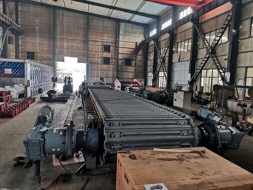 (3)輥體通過卡鍵定位在通軸上,并鎖緊,輥體長度與負荷槽板上固定運轉鏈條的加厚槽板等長并對應,支承回程槽板負荷。