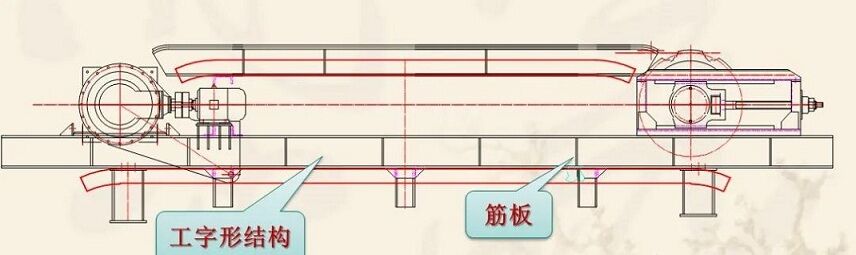 是由鋼板焊接而成的工字形結(jié)構(gòu),在上下翼緣板之間焊有若干筋板,兩個(gè)工字形主梁由若干槽鋼、工字鋼組焊為一整體,其結(jié)構(gòu)堅(jiān)固、穩(wěn)定。