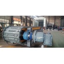 該裝置為直交軸支點(diǎn)浮動(dòng)式,主軸套裝在行星減慢速器的輸出軸內(nèi),通過瑣緊盤將兩者聯(lián)接起來,其特點(diǎn)是懸掛無基礎(chǔ),重量輕,速比大,由于采用支點(diǎn)浮動(dòng)式,減少了安裝誤差及支座引起的附加彎矩,提高了傳軸的使用壽命,拆裝及維修方便。