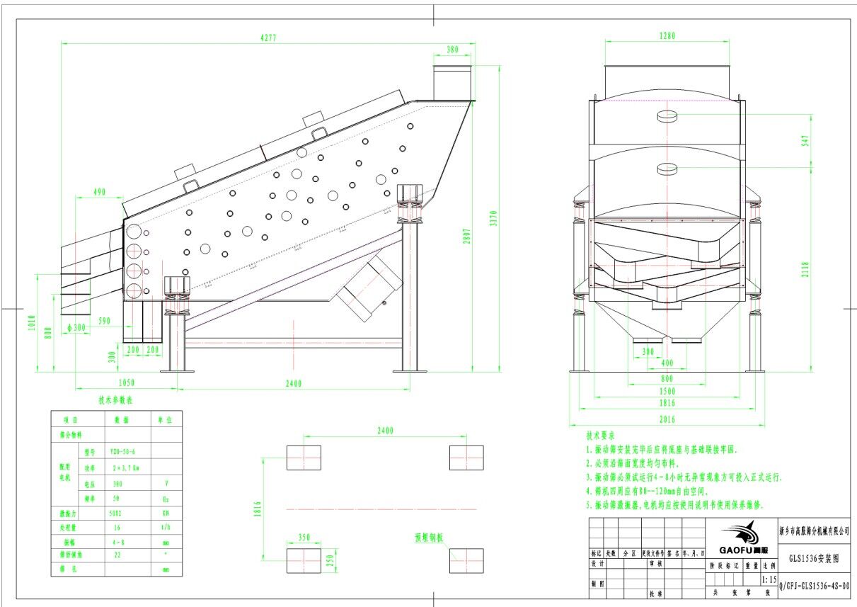 1、 GLS概率篩,計(jì)有(14)個(gè)定型規(guī)格并有振動(dòng)電機(jī)和激振器兩種振源形式,適用不同作業(yè)環(huán)境需求,選用時(shí)請(qǐng)確定電壓制式及有無防爆要求;