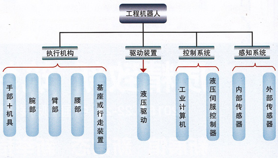 工程機(jī)器人的基本特征是液壓驅(qū)動(dòng)、遙操作、移動(dòng)作業(yè),具有大功率作業(yè)、寬范圍作業(yè)、多功能作業(yè)和智能作業(yè)的特點(diǎn)。