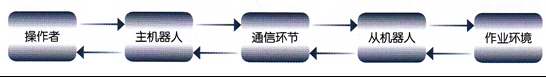 工程機(jī)器人研究的現(xiàn)狀表明,由于受到機(jī)構(gòu)、控制、傳感器以及人工智能水平的限制,研究出能在未知環(huán)境中全自主方式工作的機(jī)器人是目前難以實(shí)現(xiàn)的目標(biāo)。因此,目前在核工業(yè)、搶險(xiǎn)救災(zāi)等高危、惡劣的環(huán)境中被廣泛應(yīng)用的是遙操作機(jī)器人。遙操作機(jī)器人主要分為視覺(jué)臨場(chǎng)感遙操作機(jī)器人、力覺(jué)臨場(chǎng)感遙操作機(jī)器人、觸覺(jué)臨場(chǎng)感遙操作機(jī)器人及運(yùn)動(dòng)覺(jué)臨場(chǎng)感遙操作機(jī)器人等。基于臨場(chǎng)感的遙操作機(jī)器人系統(tǒng)原理如圖3所示,它由操作者、主機(jī)器人(手控器)、通訊環(huán)節(jié)、從機(jī)器人和作業(yè)環(huán)境5部分構(gòu)成。在臨場(chǎng)感系統(tǒng)工作過(guò)程中,由操作者向主機(jī)器人發(fā)出操作命令(如位置指令)操作主機(jī)器人運(yùn)動(dòng),主機(jī)器人的運(yùn)動(dòng)信息通過(guò)通訊環(huán)節(jié)傳給遠(yuǎn)方的從機(jī)器人,從而控制從機(jī)器人的運(yùn)動(dòng);當(dāng)從機(jī)器人同環(huán)境交互時(shí),從機(jī)器人的運(yùn)動(dòng)信息(如視覺(jué)、力覺(jué)、觸覺(jué)等信息)又通過(guò)通訊環(huán)節(jié)反饋給本地主機(jī)器人,使操作者對(duì)于現(xiàn)場(chǎng)作業(yè)情況有了有效的感知,從而能夠及時(shí)做出準(zhǔn)確判斷,發(fā)出相應(yīng)的操作命令,控制遠(yuǎn)方從機(jī)器人準(zhǔn)確、高效地完成作業(yè)任務(wù)。目前,基于視覺(jué)臨場(chǎng)感的工程機(jī)器人遙操作控制主要是用攝像機(jī)獲取現(xiàn)場(chǎng)的視頻圖像并回傳到主控端,操縱者通過(guò)監(jiān)視器來(lái)完成對(duì)工程機(jī)器人的操作任務(wù)。