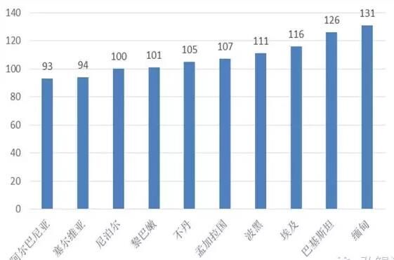 圖2“一帶一路”地區(qū)經(jīng)濟(jì)總量后10名的國(guó)家